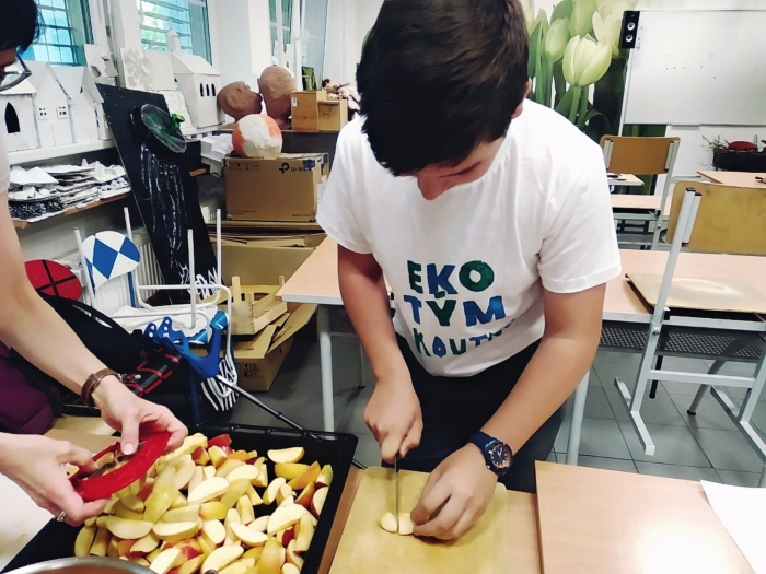 Naše škola se zapojila do projektu města „Ovocná alej na Pražské“. Nejenže jsme pomáhali při výsadbě téměř stovky ovocných stromů, ale chtěli jsme také podpořit myšlenku, aby tato alej nejen zkrášlovala okolí, ale také mohla vzdělávat. V úterý 7. června jsme přes nepřízeň předpovědi počasí zorganizovali sbírku ve škole. Je důležité vést děti k nezištné podpoře dobrých projektů, neočekávat jenom okamžitý profit a vložit svůj čas i energii na dobrou věc. Velkou oporou byl školní Ekotým, který se podílel především osvětou na téma: „Význam ovocných stromů v přírodě“. Společně s vyučujícími jsme připravili zdravou svačinku. Napekli jsme cca 600 ks muffinů, připravili 400 ks ovocných salátků, nechyběl ani jablečný moštík a banánový koktejl. Byla opravdová radost sledovat, jak se naše děti na tuto akci připravily a podpořily ji. Moc děkujeme také našim rodičům. Podařilo se nám vybrat více než 13 000 Kč na edukační cedulky k jednotlivým stromům!